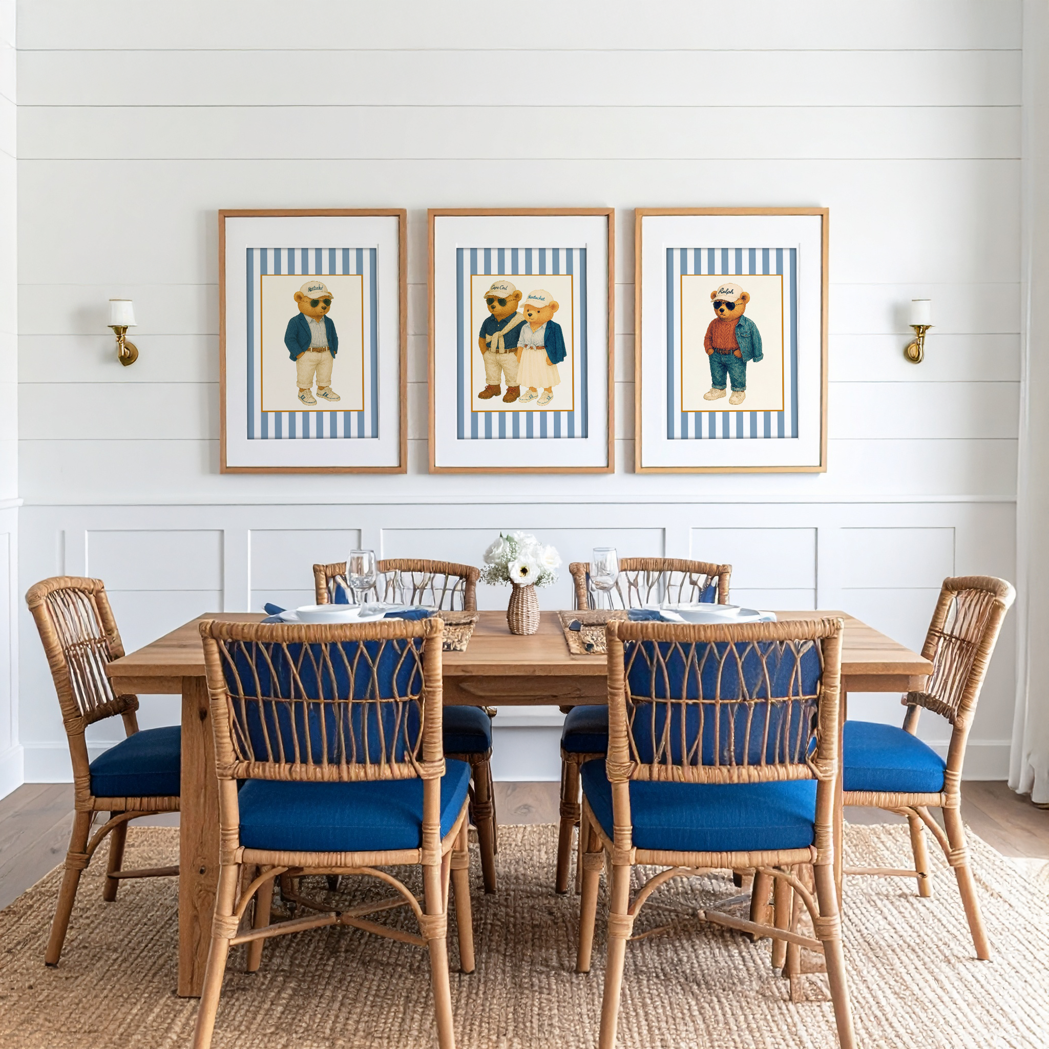 We are a small family business. Each piece is hand illustrated and created in our studio in the Cotswolds, England. Inspired by our family adventures and memories. From iconic movie homes and coastal illustrations to whimsical coffee shop and vintage botanical watercolor paintings. Shop destination prints and our popular bear artwork in the classic Hamptons style.
