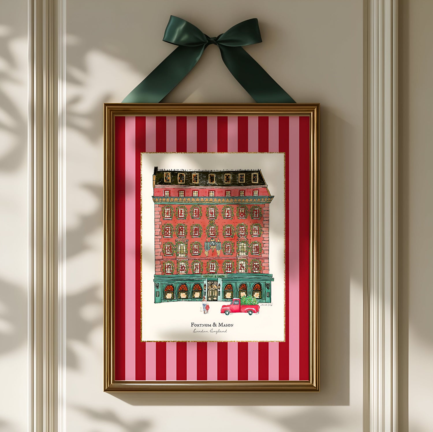 Fortnum & Mason at Christmas, London Store Watercolor Illustration