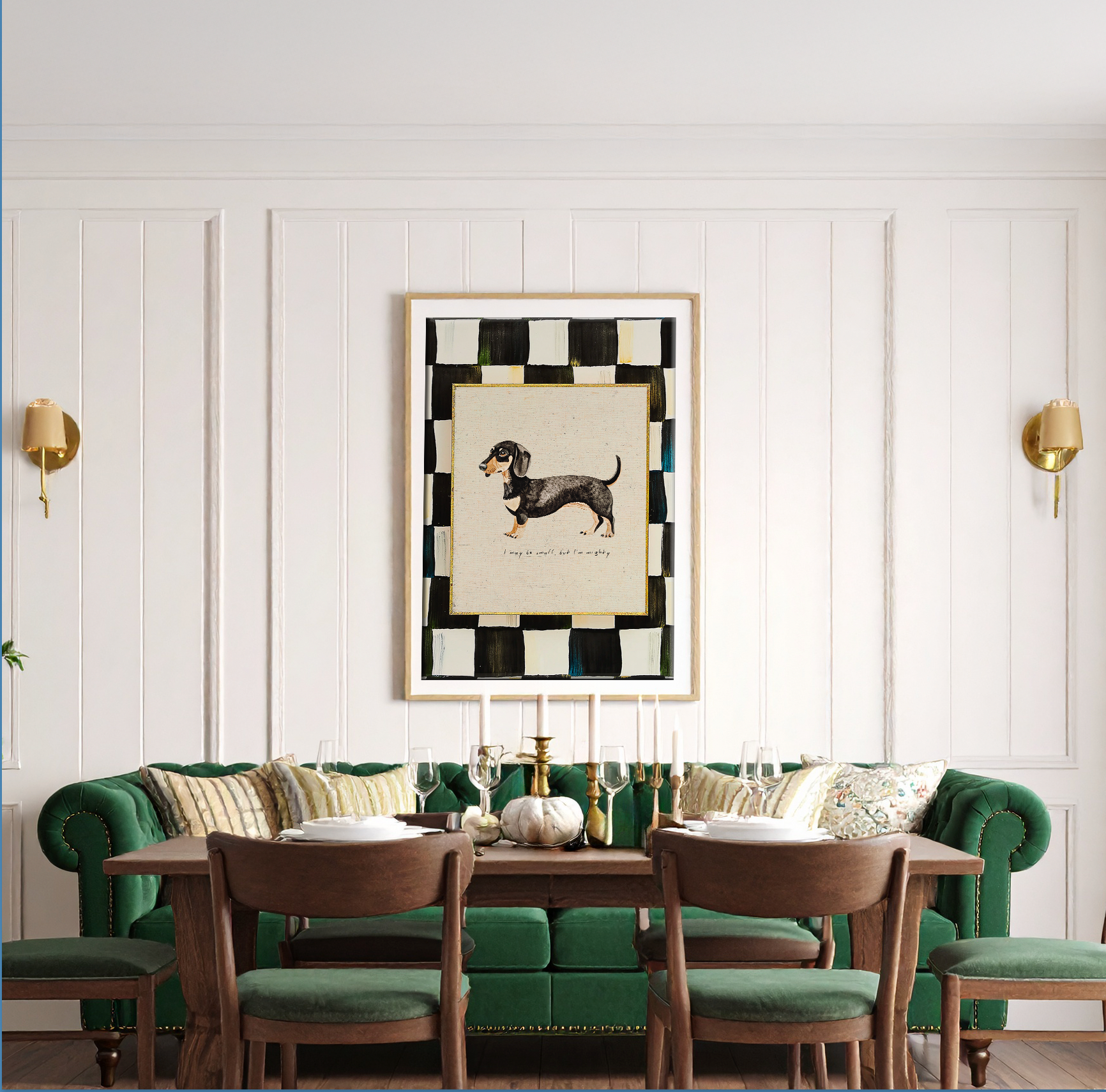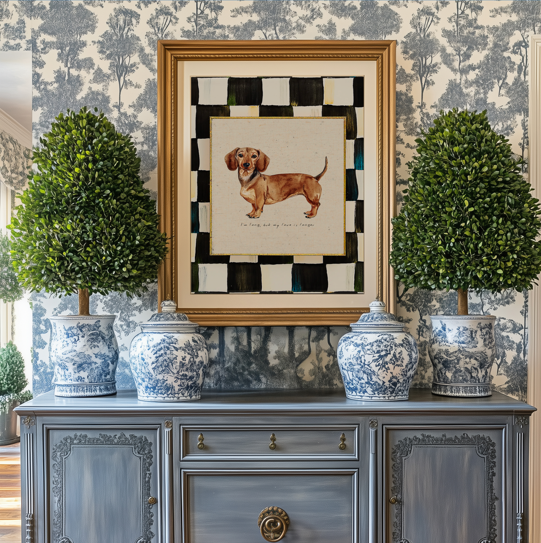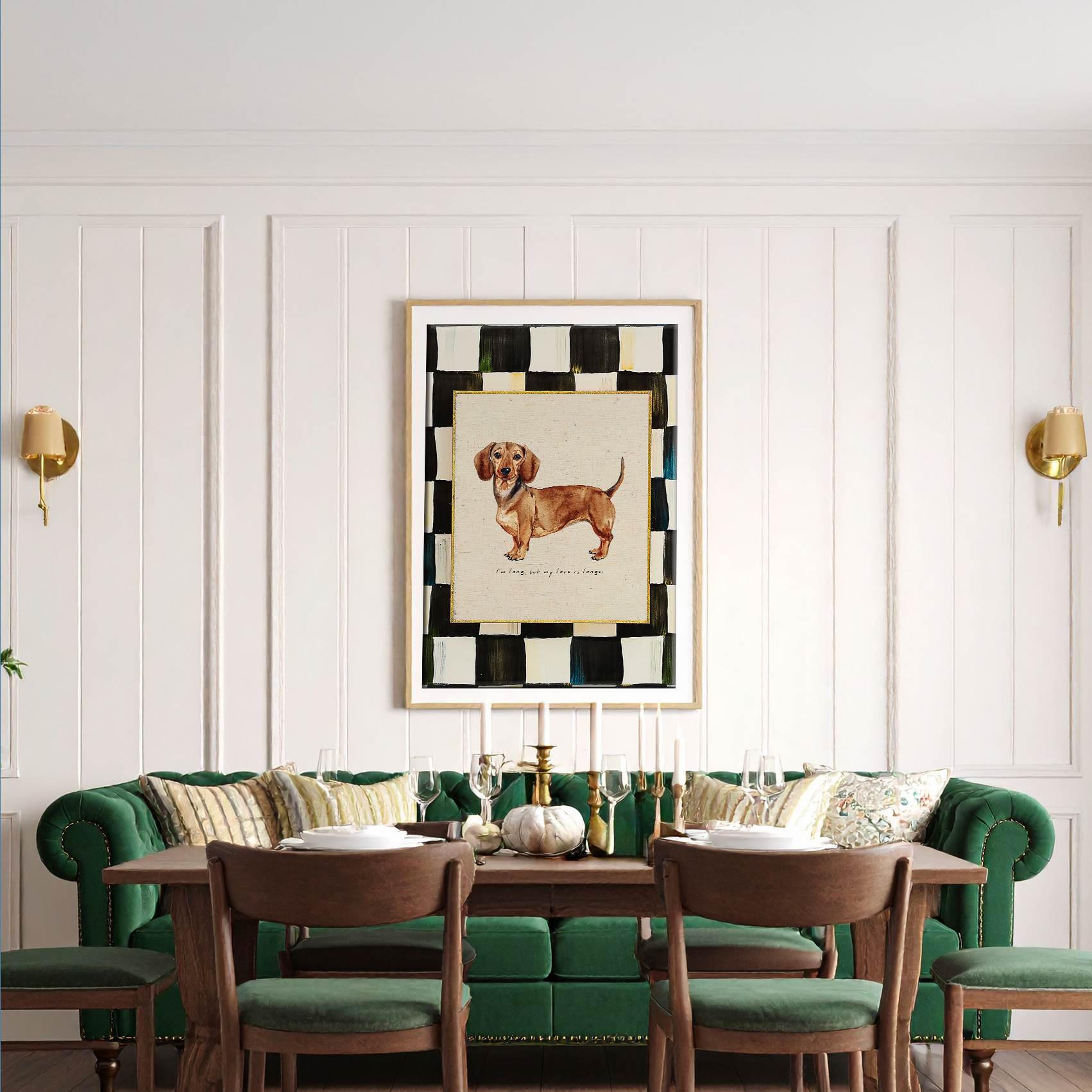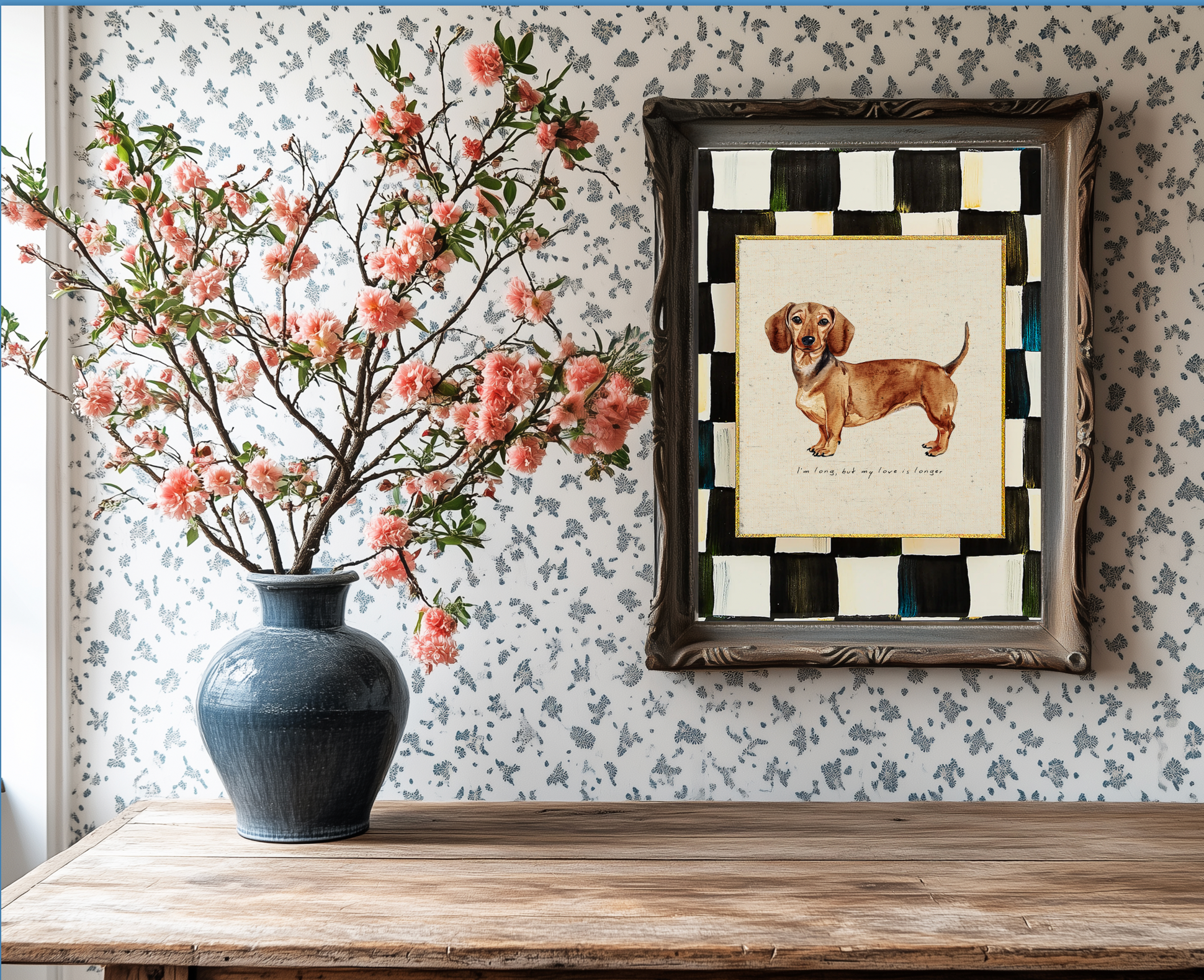 Brown Dachshund Print, Black and White Check Wall Art, Sausage Dog Illustration, Dachshund Artwork