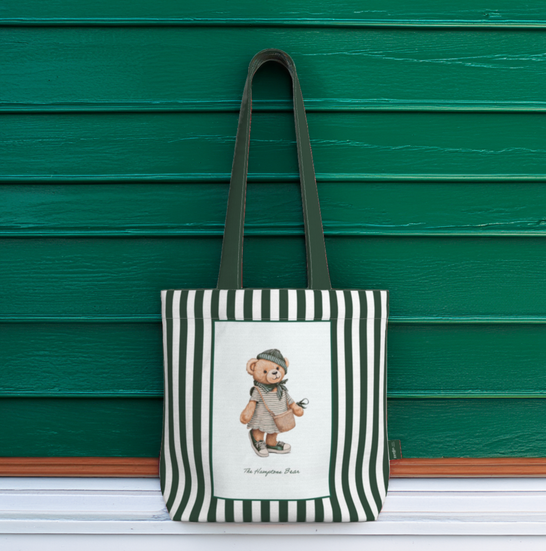 Custom Shopper Bear Cotton Tote, Personalized Vintage Bear Tote