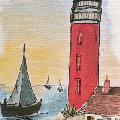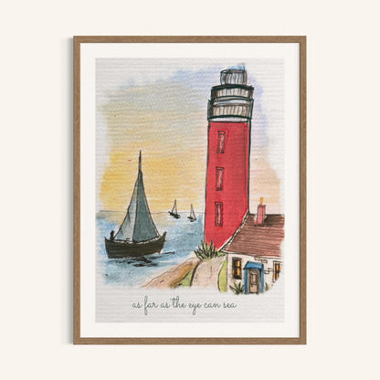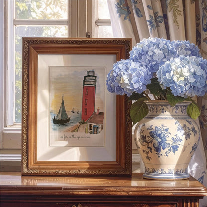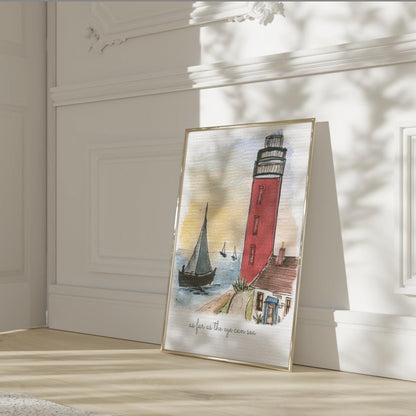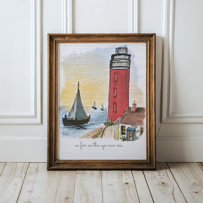 Lighthouse Wall Art Coastal Print Hamptons Nantucket Artwork Seascape Watercolor