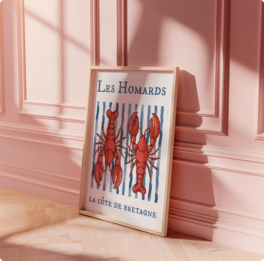 Lobster Print "Les Homards" Coastal Artwork Beach House Decor Fishermen Aesthetic