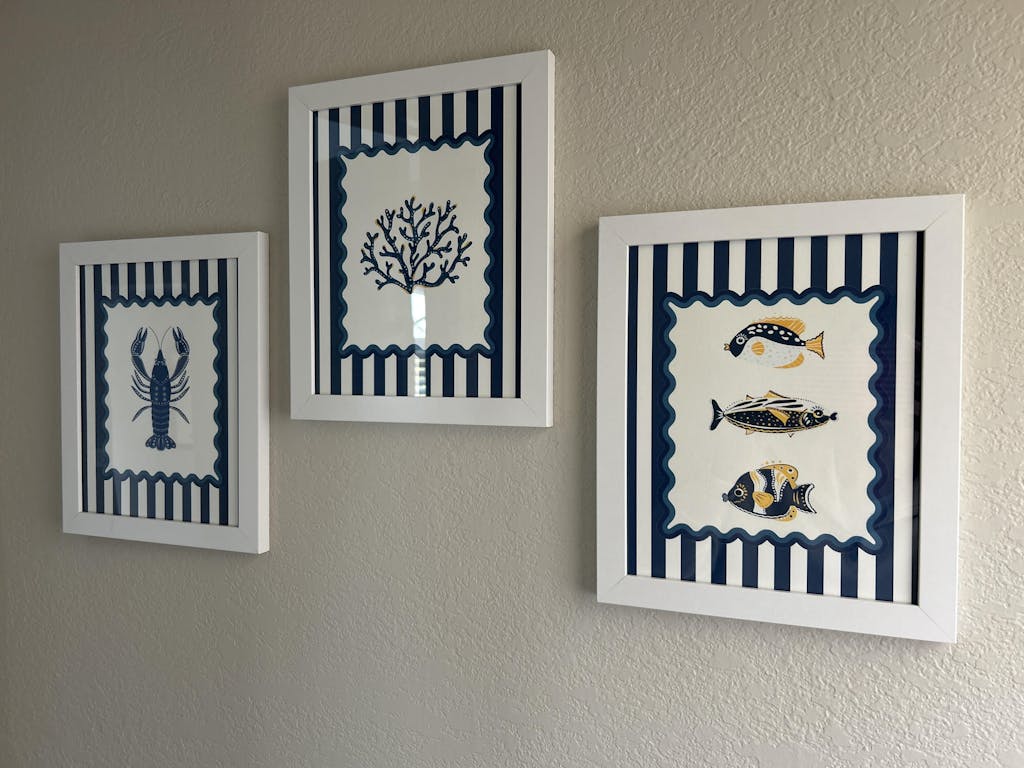 Lobster, Sardines & Coral Wall Art. Gallery Print Set of 3 - Indigo Blue
