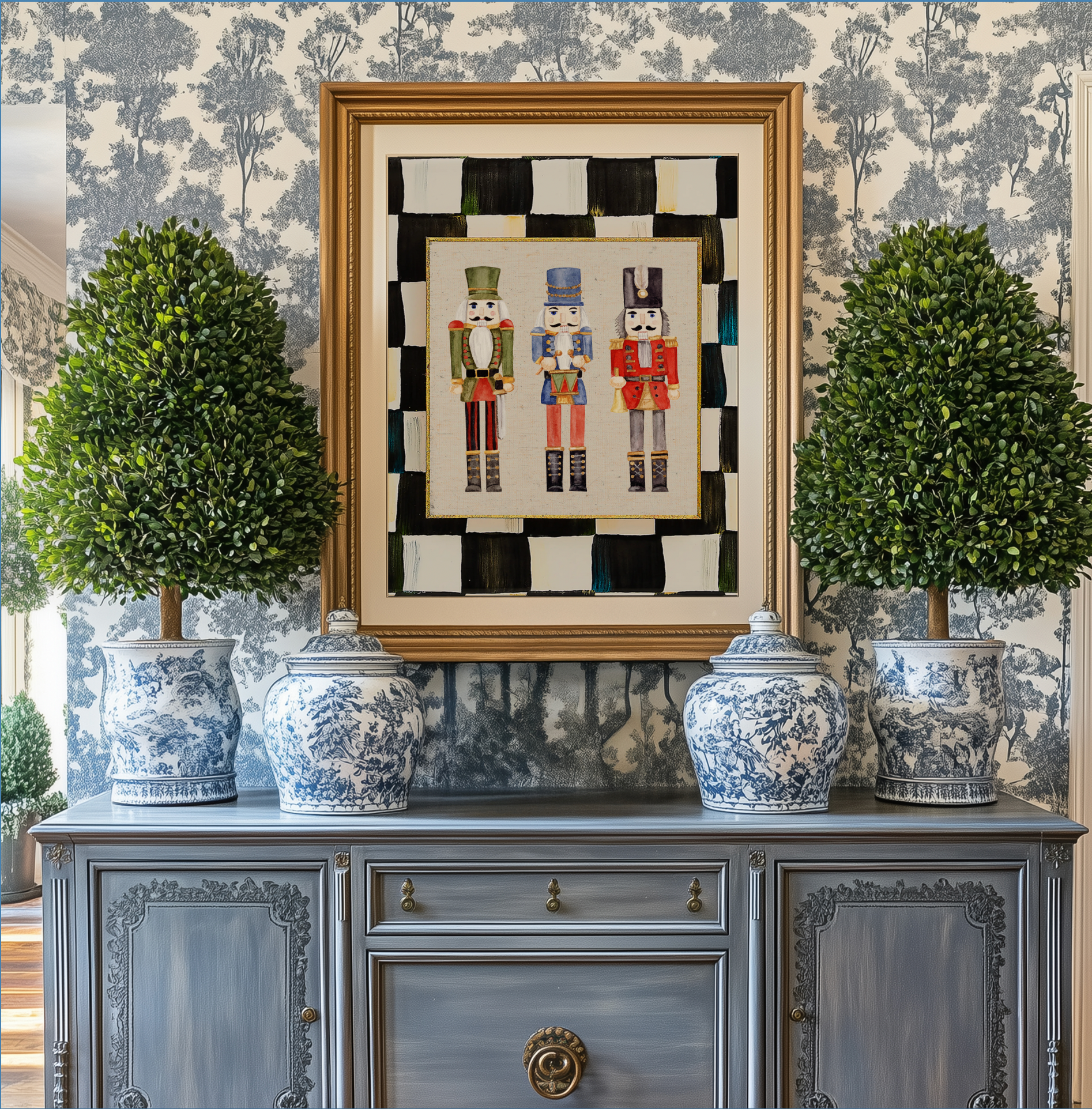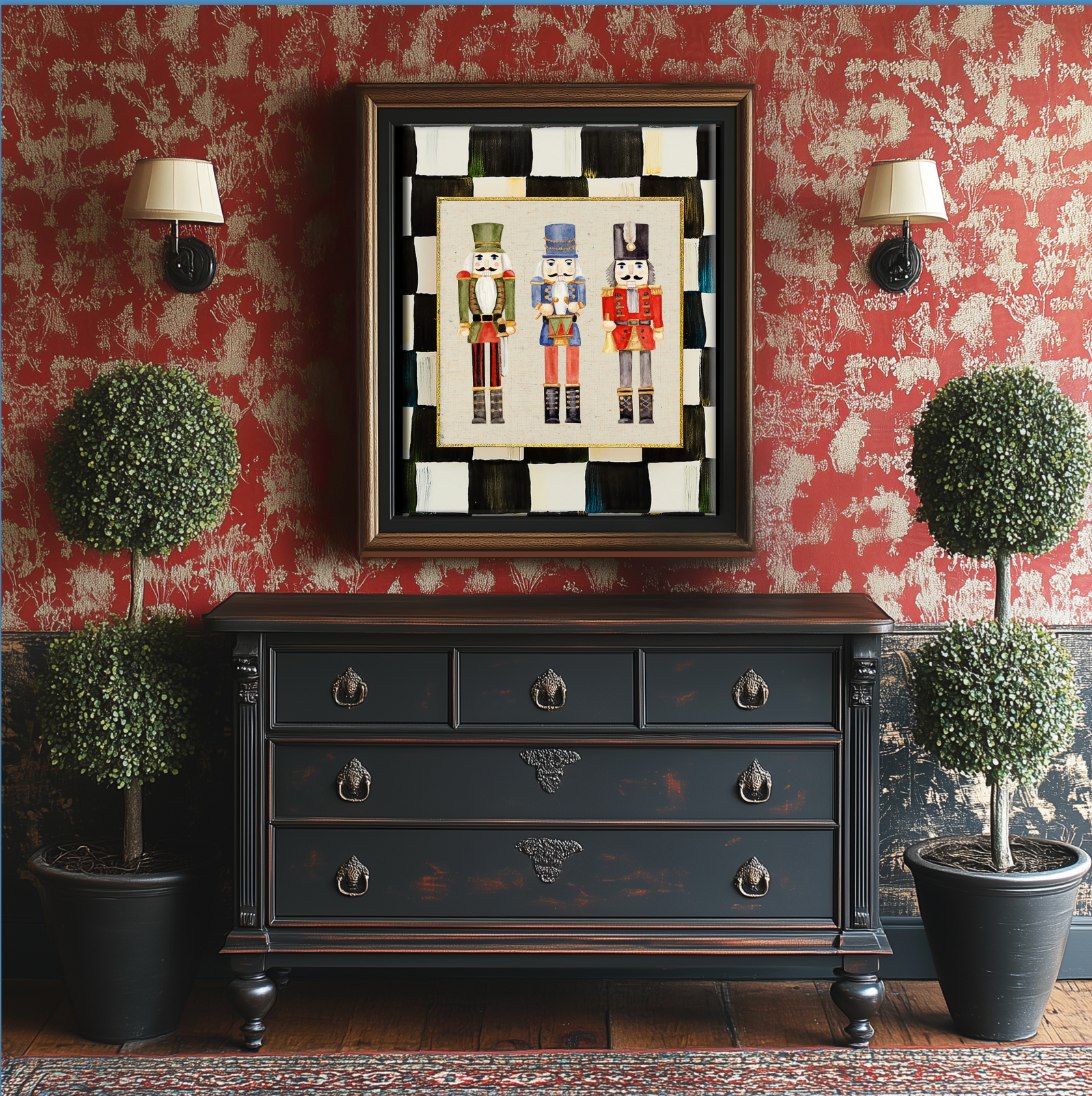 Nutcracker Holiday Print, Christmas Art, Three Kings Nutcracker Artwork, Holiday Wall Art Black Check