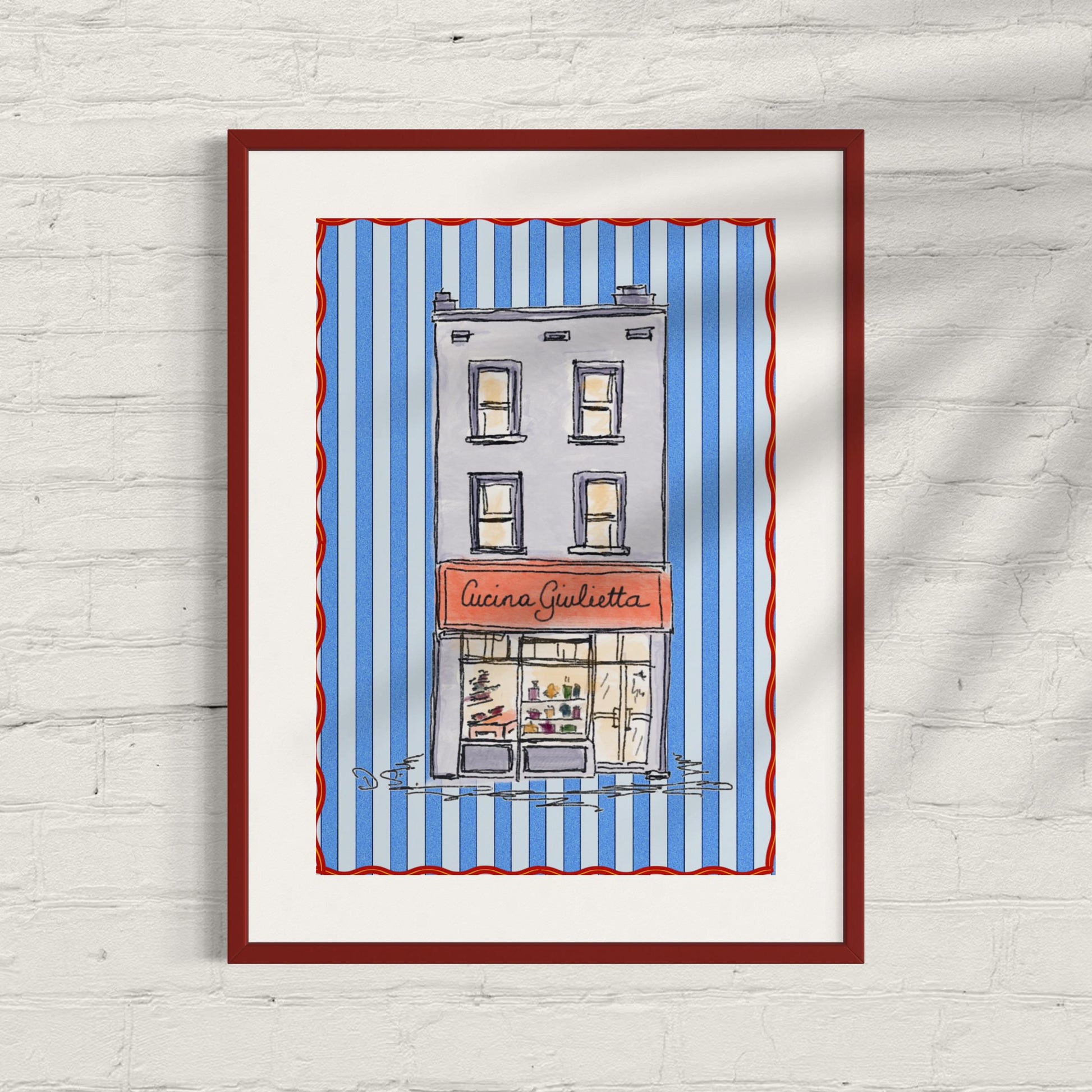 This print is taken from my original illustration of Cucina Giulietta's Italian kitchen!