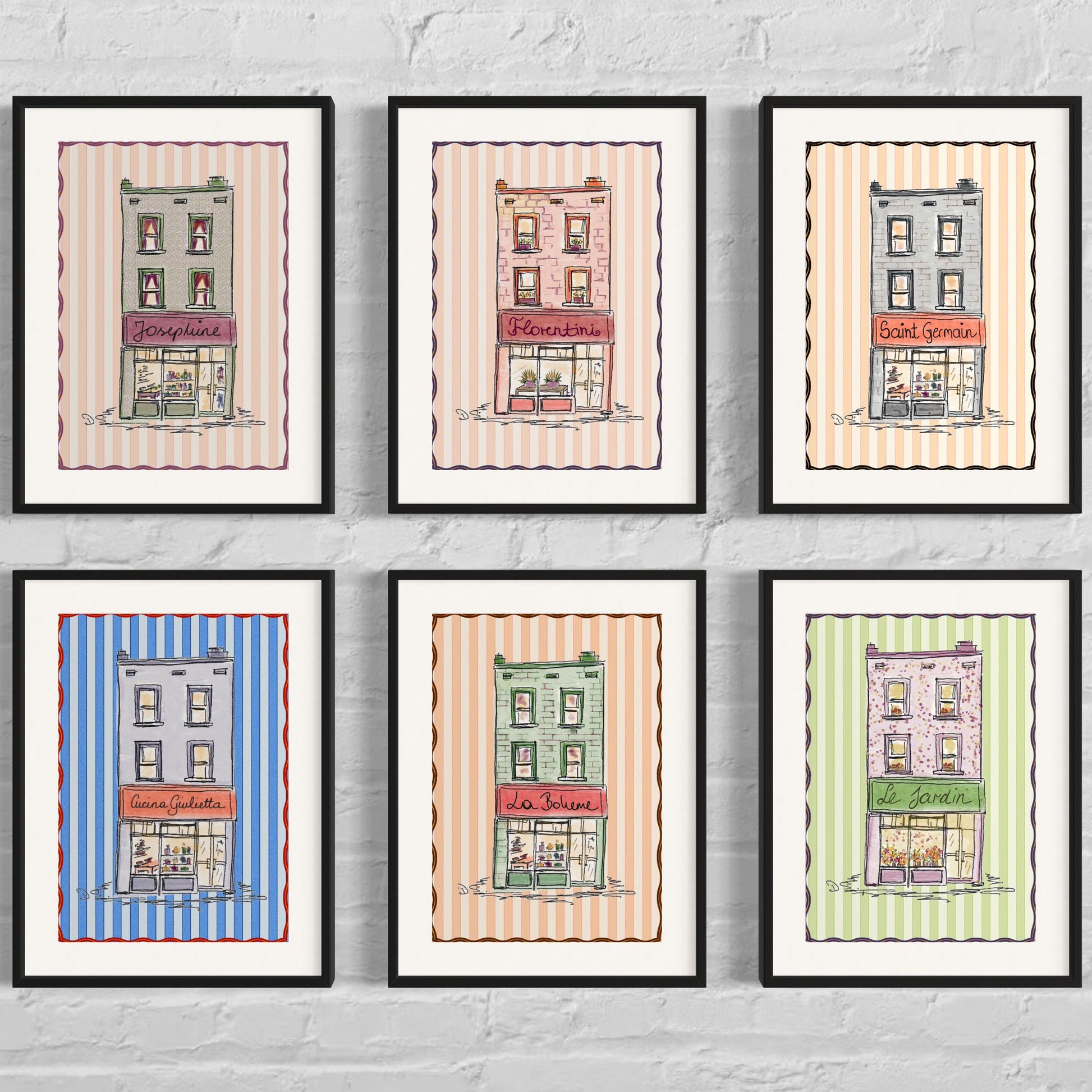 Paris Shop Illustration Print Paris Bakery Striped Design