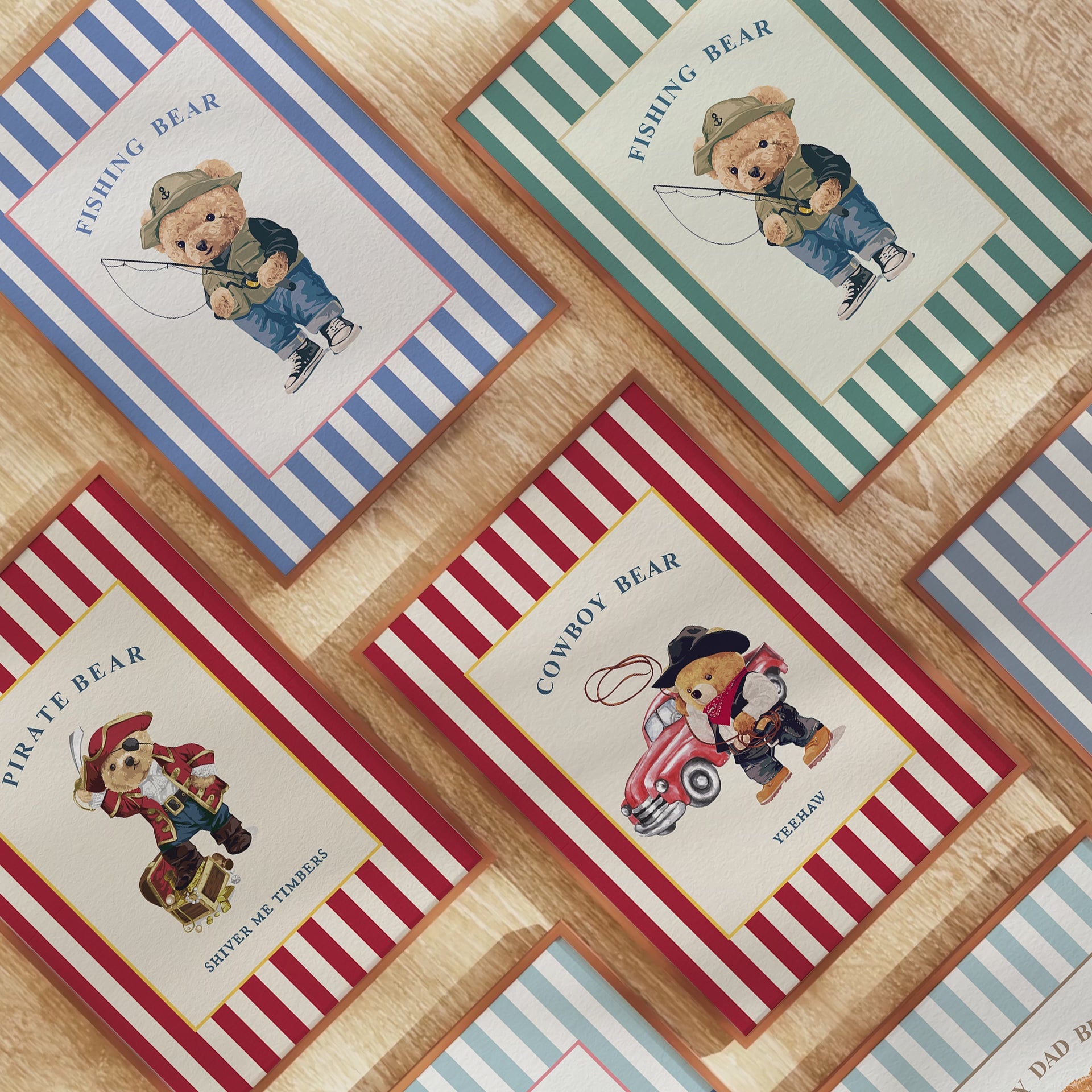 Blue Striped Bear Artwork Nursery Wall Art Set of 3