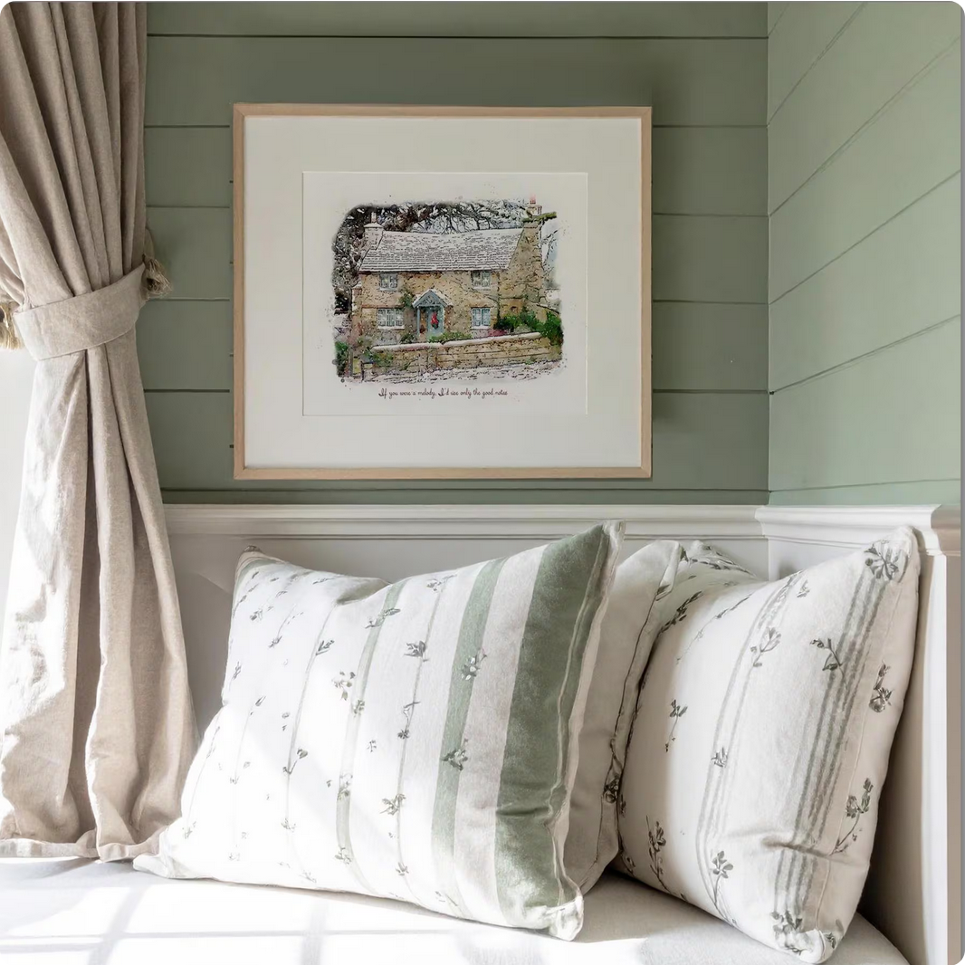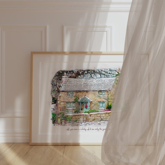 "Rosehill Cottage" from "The Holiday" movie home watercolor illustration.