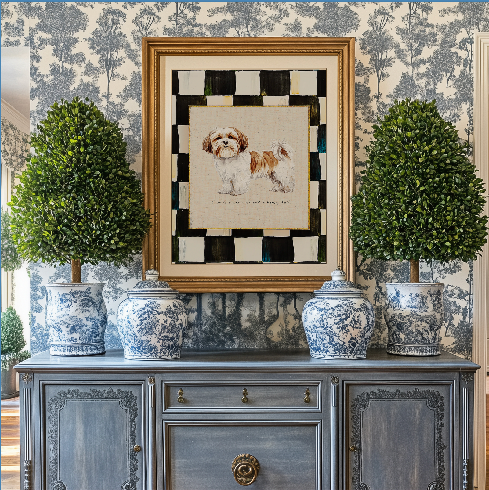 Beagle Dog Print, Black and White Check Wall Art, Beagle Illustration, Dog Lover Artwork