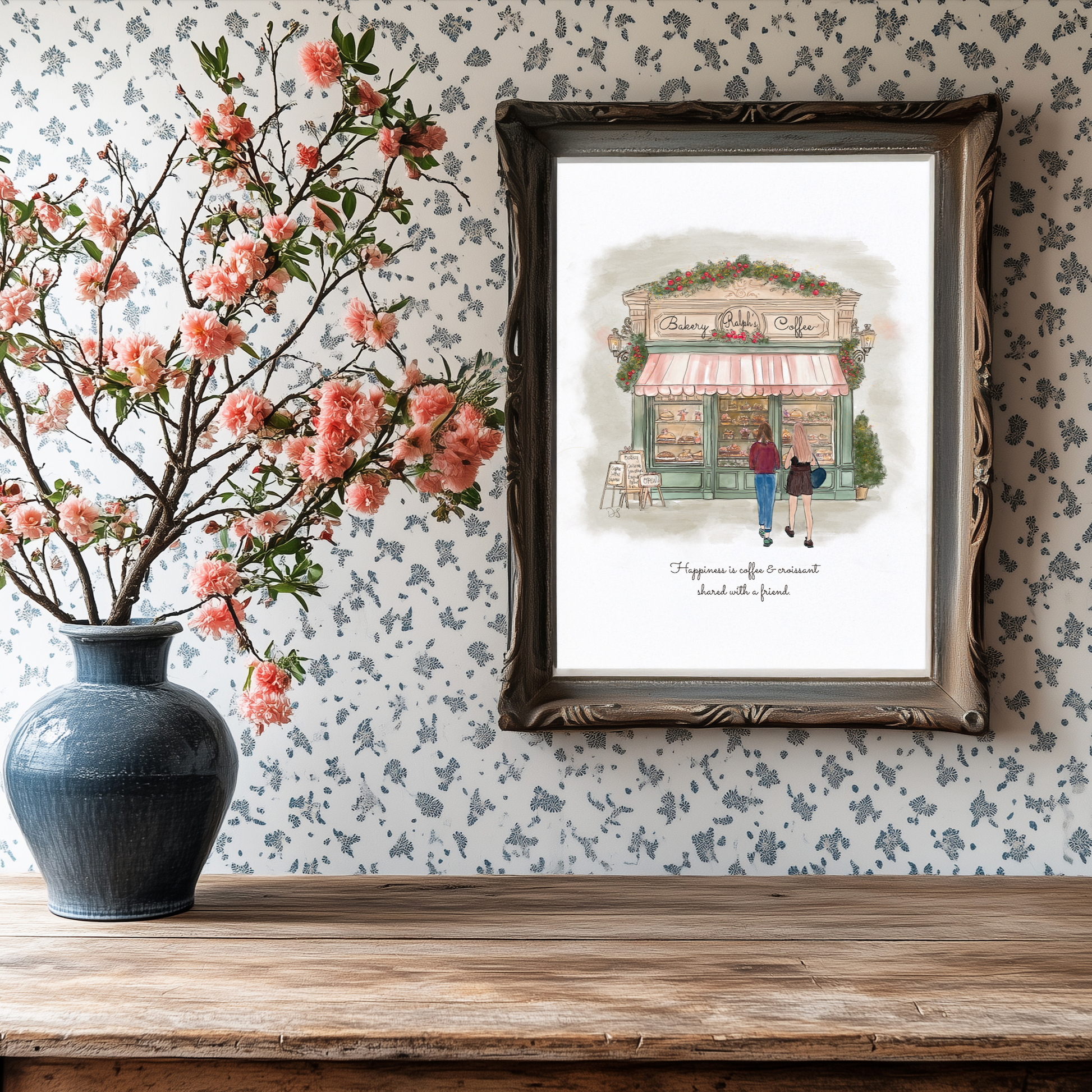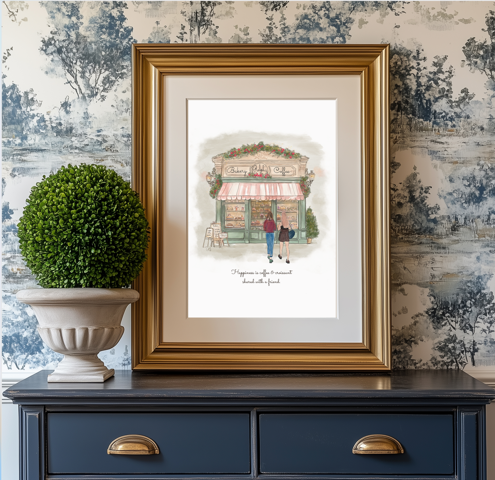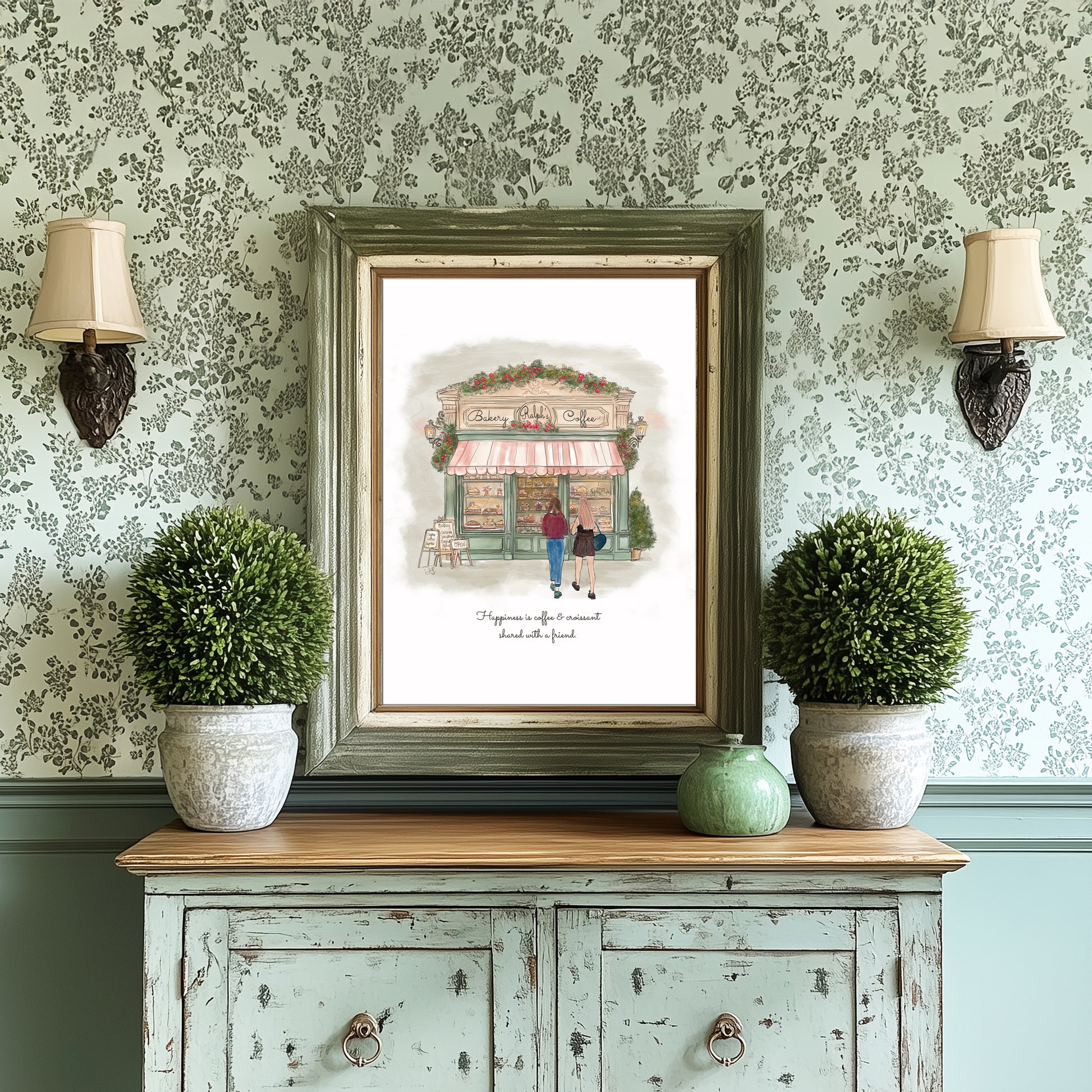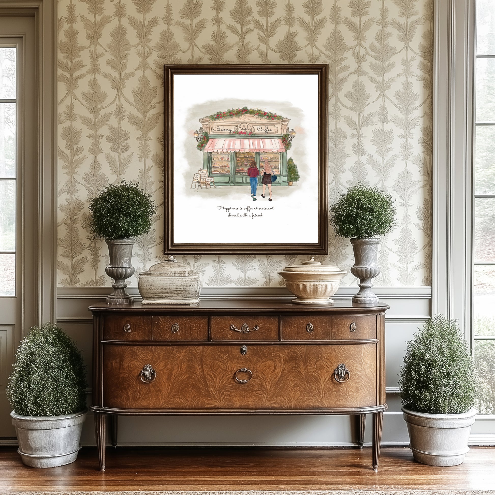Paris Coffee Shop Illustration, Bakery Wall Art for French Lovers