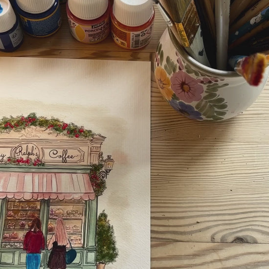 Transform your space with the serene and picturesque charm of "Ralph's Coffee Shop" line drawing.